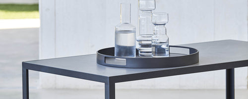 The Club outdoor trays are made in aluminium and comes in two different sizes. The round version fits perfectly on our Rest footstool, and the square tray can transform your Diamond or Chester footstool into small and practical coffee tables.