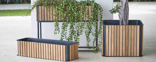 Combine is a range of functional and spacious boxes in black powder coated aluminium and slats in certified teak. In the combine range you will find storage solutions for your outdoor environment. Whether it is for storing your cushions in the cushionbox, when the weather changes. Or for “storing” all your greens together in the planters. The warm certified teak and the streamlined powder-coated aluminum gives a unique look that fits in most spaces.