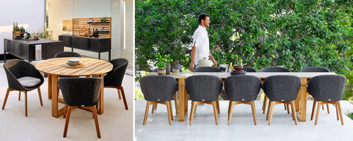 Endless is a table which can match different needs, as the table is designed both as a rectangular and a round table in various sizes. The Endless table is manufactured in certified teak, providing a natural look and a long-lasting table. Teak is an oil-rich wood, which is ideal for outdoor use. The wood acquires a natural silver-grey patina with time. However, it can also retain its natural glow through the application of teak oil.