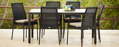 The Newport chair is an easy and versatile chair that will be a favourite for all those looking for a stackable and comfortable chair that doesn't take up a lot of space. Ideal for the small terrace in the private home or as a contract chair for hotels and restaurants. The Newport comes in black loom weave and with or without armrest.