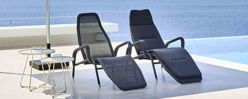 Sunrise is the combination of a sunbed and a sunchair. Sunrise offers an upraised position, which allows relaxation with a book or the like. Then, to recline back, just use your arms as a leverage to ease the chair into a more horizontal position. Sunrise is easily stackable with 5 pieces on top of each other, making it ideal for hotels or other places where storage is a necessity. To improve the design of the popular model, the frame is now fully covered with weave fiber.